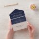 Invitation Tout En Un Code QR élégant Réception de mariage bleu marine