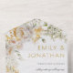 Le faire-part de mariage est une oeuvre d'art époustouflante qui incarne l'essence de la romance, de la beauté et du raffinement. Les coups de pinceau délicats de l'aquarelle créent un sentiment d'élégance éthérée, tandis que les roses blanches évoquent des sentiments de pureté et de grâce. Les touches dorées apportent une touche de luxe et de glamour, faisant de cette invitation un véritable chef-d'oeuvre. Le design est moderne mais intemporel, captant sans effort l'essence d'un mariage contemporain tout en conservant une esthétique classique. Les éléments floraux sont minutieusement détaillés, chaque pétale et chaque feuille soigneusement travaillés à la perfection. L'ensemble est sobre et raffiné, dégageant un sentiment de chic sans effort qui impressionne les clients les plus exigeants. En bref, l'Invitation est une oeuvre d'art qui respire la grâce, le style et le raffinement. C'est le choix idéal pour les couples qui souhaitent faire une déclaration avec leurs invitations de mariage et laisser une impression durable à leurs invités. Des éléments correspondants sont disponibles.