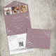 Célébrez votre amour avec une touche d'élégance moderne et de charme boho avec notre faire-part de mariage tout-en-un mauve d'inspiration botanique ! Doté d'accents de dentelle argentée vintage et rustique, ce design exhale une élégance intemporelle. Personnalisez-le avec quatre photos chères du couple heureux, capturant magnifiquement votre voyage ensemble. Simplifiez les RSVP et fournissez des informations supplémentaires sans effort avec notre site Web et notre code QR inclus. Laissez fleurir votre histoire d'amour avec cette parfaite fusion de botaniques modernes, d'allure vintage et d'allure bohème.