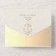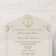 Une invitation de mariage baroque luxueuse en ivoire et or, conçue pour les couples qui aiment l'élégance classique et la commodité moderne. Conçue avec des accents dorés ornés et un blason monogramme baroque vintage, cette invitation dégage un charme intemporel tout en gardant tout beau et organisé de manière écologique.