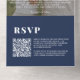 Simple et minimaliste Marine Bleu RSVP QR Code Overlay Photo Script Mariage All in One Invitation.