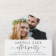 Fuite romantique élégante ou annonce de mariage privée combinée à une invitation à une réception de mariage pour annoncer votre mariage à votre famille et à vos amis et les inviter maintenant à une réception ou à une fête après le mariage. Ce design présente votre photo et une annonce de mariage personnalisée et une invitation à la réception, "Fête pour toujours heureux" dans un mélange de typographie simple et d'un script élégant avec fioritures. Entrez l'adresse URL de votre site web de mariage pour créer un code QR permettant à vos invités de répondre en ligne et d'obtenir des informations sur l'hébergement, les directions, les fêtes de la veille et d'autres détails. Une carte postale RSVP détachable offre une réponse pratique et écologique sans enveloppe de la part de vos invités.