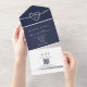 Invitation Tout En Un Code QR simple Mariage bleu marine