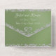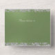 Ce design romantique présente un arrière - plan vert sage avec des bordures de parties scintillant, un coeur de défilement argenté délicat, script en fontes élégantes. Parfait pour le mariage simple à élégant. Aussi disponible avec différents arrière - plans de couleur pour vos couleurs mariages. (La Parties scintillant est simulée dans l'illustration). Conçu pour coordonner avec la collection "Romantic Scroll Hearts & Parties scintillant Mariage". Pour modifier les détails, cliquez sur "Personnaliser". Pour déplacer le texte ou modifier la taille, la police ou la couleur du texte, cliquez sur "Cliquez pour customiser plus loin"