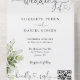 Invitation Tout En Un Coeur Script vert Floral QR Code Mariage