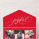 Un élégant script "joyful" est entouré d'étoiles scintillantes sur cette carte de vacances unique. Personnalisez-le avec votre collage de 6 photos et une grande photo simple. Il y a également de la place pour un message plus long qui peut fonctionner comme une mise à jour ou laissé vide. Parfait pour envoyer l'acclamation de Noël à des amis et à la famille. Cette carte rouge se plie et peut être envoyée comme carte postale de vacances. La partie inférieure fait un joli sac photo de famille.