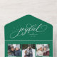 Un élégant script "joyful" est entouré d'étoiles scintillantes sur cette carte de vacances unique. Personnalisez-le avec votre collage de 6 photos et une grande photo simple. Il y a également de la place pour un message plus long qui peut fonctionner comme une mise à jour ou laissé vide. Parfait pour envoyer l'acclamation de Noël à des amis et à la famille. Cette carte verte se plie et peut être envoyée comme carte postale de vacances.