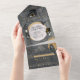 Déplaisant et cool mais toujours élégant, Celestial Gothic Misty full Moon Mariage All in One Invitations qui incluent les infos mariage, RSVP, et choix de repas carte postale que vos invités déchirent et envoient. Les enveloppes ne sont pas nécessaires. Elles comprennent une fausse lune d'or, un crâne avec chapeau, une horloge victorienne, une chauve-souris, des mains squelettes, des corbeaux, des branches, une poussière d'or chatoyante et un oeil attentif. Idéal pour une soirée, sombre et maussade, mystique, gothique, halloween ou un mariage clair de lune !