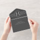 Invitation Tout En Un Déco Monogramme moderne Charbon noir QR Code