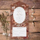 DISPONIBLE AVEC OU SANS CODE QR. Ce design présente un cadre fleur sauvage doux de rouille, or, brun et des fleurs de pêche autour d'un ovale blanc sur un arrière - plan orange brûlé de rouille. Ajoutez un code QR à votre invitation afin que les clients puissent accéder rapidement à votre site Web mariage pour obtenir des détails, des instructions, des options de menu, etc., ou ajoutez votre URL Web de registre des cadeaux. Les invitations tout-en-un personnalisées sont une combinaison unique d'une invitation personnalisée magnifiquement imprimée et d'une carte postale RSVP perforée facile à déchirer. Et ils sont si faciles à utiliser ! Il suffit de plier, puis de sceller le rabat arrière avec les trois autocollants clairs inclus, et le courrier. Et quand vos invités reçoivent votre invitation personnalisé, ils déchirent la carte RSVP perforée et vous la remettent dans le courrier ! Créé par Simply Farmhouse Press.