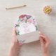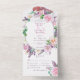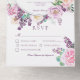 DISPONIBLE ÉGALEMENT AVEC UN CODE QR À ANALYSER DANS LA ZONE RSVP. Ce design présente un cadre ovale fleuri de lilas pourpre et rose, de roses et d'autres fleurs agrémentées d'eucalyptus et de verdure. Un oiseau sucré surplombe la couronne de fleurs. Les invitations tout-en-un personnalisées sont une combinaison unique d'une invitation personnalisée magnifiquement imprimée et d'une carte postale RSVP perforée facile à déchirer. Et ils sont si faciles à utiliser ! Il suffit de plier, puis de sceller le rabat arrière avec les trois autocollants clairs inclus, et le courrier. Et quand vos invités reçoivent votre invitation personnalisé, ils déchirent la carte RSVP perforée et vous la remettent dans le courrier !