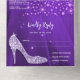 Invitations personnalisées et élégantes pour fêtes d'anniversaire personnalisées pour filles. Beau invitation violet et blanc pour la Quinceañerea d'une fille à 15e anniversaire, avec une boule de miroir rétro funky, image glamourante strass / diamants parties scintillant, paillettes, bijoux brillant talons hauts talons chaussure, et robe de paillettes avec étincelles sur un violet classe avec lumières blanches et arrière - plan pétillant .. Chic, mignon, girly, invitations modernes avec des couleurs tendance et à la mode. Ce sont des invitations cool, super, élégants, sophistiqués et jolis. Invitations parfaites pour les dîners dansants Quinceañera. VEUILLEZ NOTER : Toutes les invitations sur Zazzle ont des images imprimées plates. Tout le texte, la police et la couleur de police sont entièrement personnalisables pour répondre à vos besoins. Si vous désirez de l'aide pour customiser votre produit ou si vous désirez des produits correspondants, veuillez me contacter par l'intermédiaire de mon magasin et je serai très heureux de vous aider. Des changements de couleur sont disponibles. (Ce design est adapté à tous les âges/événements et saisons.)