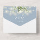 Le tout dans un faire-part de mariage bleu poussiéreux avec verdure botanique, lumières à cordes et typographie élégante. L'invitation comprend une carte RSVP perforée avec votre code QR du site Web mariage et des détails. Conçu par Thisisnotme©