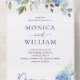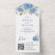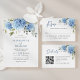 Invitation Tout En Un Elégant aquarelle bleu Hydrangea QR code Mariage