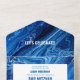Cette élégante invitation combine magnifiquement sophistication et énergie, ce qui en fait le choix parfait pour une célébration Bar Mitzvah. L'arrière - plan présente une texture étonnante qui évoque le mouvement apaisant des vagues océaniques, tandis que la palette de couleurs bleu et blanc complète parfaitement l'occasion. Avec son thème surf, océan, plage ou été, ce design ajoute une touche de plaisir et d'élégance à la journée spéciale.
