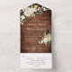 Invitation Tout En Un Élégant bois rustique Mariage Roses blanches