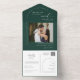 Cette invitation tout-en-un comporte une calligraphie élégante et une police de typographie simple avec une forme d'arc en tête sur un arrière - plan vert émeraude et photo et QR Code. La simplicité de ce design ajoute une touche d'élégance à votre mariage. Il fonctionne bien avec de nombreux thèmes mariages et certainement un grand ajout à votre mariage. Il suffit de customiser les noms et le libellé en quelques étapes simples et de personnaliser la carte d'invitation tout-en-un avec votre photo du couple heureux et de remplacer le code QR par le vôtre pour donner à votre invitation une touche personnelle agréable. Cette invitation vous fera économiser de l'argent pour envoyer tout en même temps. Il a une carte postale perforée RSVP peut être facile à déchirer et votre invité vous l'envoie. Il suffit de plier chaque carte dans la forme esquissée — sceller et envoyer à vos invités. Aucune enveloppe n'est nécessaire pour l'expédition — juste l'affranchissement. Remarque : Le libellé en forme d'arc de "Vous êtes invité au mariage de", "S'il vous plaît livrer à", "S'il vous plaît", ET "le mariage de" ET l'élégant script de typographie de calligraphie de "et", "Réception à suivre", "gentiment", "livrer à" ainsi que les lignes et autres éléments d'illustration graphique et les mots ne peuvent pas être modifiés, déplacés, et/ou supprimés. Elles sont réparées. Si vous devez changer la couleur, vous pouvez customiser l'invitation à la carte. Vous pouvez customiser et personnaliser l'invitation afin de répondre à vos besoins mariages et cliquez simplement sur personnaliser de l'invitation.