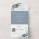 Invitation Tout En Un Élégant Floral Dusty Blue Qr Code Mariage