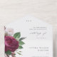Un design simple et classique tout en une faire-part de mariage de Stacey Meacham avec le monogramme élégant d'un couple et riche en prune et fleurs rose pâle avec déchirure de la carte RSVP. Idéal pour un événement élégant de cravate noire ou une réception en soirée décontractée.