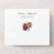Ces invitations de mariage ont un motif floral aquarelle avec des roses de corail rouge et poussiéreux, des fleurs et une bordure en faux argent. Des articles de papeterie correspondants sont également disponibles.