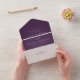 Avec une typographie classique et élégante, ce faire-part de mariage formel donne le ton à un mariage intemporel. L'arrière - plan élégant en prune violet peut être modifié en cliquant sur "customiser plus loin". Parfait pour un mariage d'automne. Il y a beaucoup de place pour tous les détails de la mariage et de la réception et la carte RSVP détachable peut être envoyé comme carte postale.