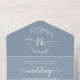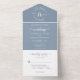 Invitation Tout En Un Élégant minimal Floral Dusty Blue Monogram Mariage