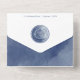 Élégant tout-en-un tri-plié avec carte postale RSVP perforée. Conception avec un chic monogramme botanique dessiné à la main et qui encastrent les initiales des couples et un cadre délicat bleu marine en aquarelle à l'intérieur ainsi que des sections marine et bleu en aquarelle à l'extérieur. Eléments calligraphiques écrits à la main modernes. Respectueux de l'environnement, puisqu'il n'est pas nécessaire d'insérer des cartes supplémentaires, des cartes RSVP ou même des enveloppes, cette invitation a tout ! Possibilité d'ajouter à la fois les détails de la cérémonie et de la réception des Mariages, ainsi que la carte postale RSVP prêt à être rempli et envoyé par la poste! Option pour commander des invitations avec un nom d'invité imprimé (ou écrit à la main plus tard) au dos afin que vous puissiez envoyer une carte sans besoin d'aucune enveloppe, - OU - si vous préférez utiliser une enveloppe, effacez simplement le nom d'invité et les caractères d'adresse des zones de texte pour supprimer, ou ajoutez un devis à la place. Extérieur rsvp retour avec beau arrière - plan marine et bleu teintes aquarelle couleur. Un design attrayant pour le couple élégant, mais pratique et respectueux de l'environnement! Une partie de notre collection "Marine Watercolor Botanical Monogram Mariage" avec une variété de produits de coordination disponibles, y compris des accessoires d'expédition et des produits d'événements. Visitez la collection entière avec ce lien : https://www.zazzle.com/collections/navy_watercolor_botanical_monogram_wedding-119781162008756698