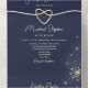 Invitation vos invités dans le style avec cette élégante faire-part de mariage tout en un bleu marine et or. Doté d'un coeur romantique de cordes d'or, d'un accent étoilé pétillant et d'un code QR intégré pour RSVP, ce design pliable est parfait pour les mariages modernes avec un thème céleste ou luxueux. Personnalisez facilement tous les détails — depuis l'info de la cérémonie jusqu'à l'adresse de retour — dans un beau format, aucune enveloppe nécessaire. Idéal pour les couples qui recherchent un design élégant et peu encombrant avec une touche de romantisme étoilé.