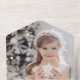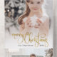 Accueil de vacances simple et élégant avec votre photo avec un filtre blanc opaque, fausse parties scintillant or personnalisé Joyeux script de calligraphie de Noël et champs de texte modifiables.