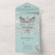 Célébrez votre amour avec cette élégante faire-part de mariage tout-en-un rose pastel et bleu. Dotée d'un motif floral délicat avec un beau accent papillon, cette invitation est parfaite pour les mariages romantiques, décorés sur le thème du jardin. Customisez avec vos nom, date et détails mariages pour une touche personnelle. Remarque : Cette invitation tout-en-un nécessite une enveloppe distincte pour l'envoi. Nous vous recommandons de l'apparier avec une enveloppe A9 standard (5,75 po x 8,75 po) pour un meilleur ajustement.