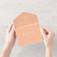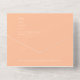 Cette invitation tout-en-un comporte une police de caractères serif de bloc propre et simple et de calligraphie sur un arrière - plan de pêche. La simplicité de ce design ajoute une touche d'élégance à votre mariage et fonctionne bien avec tous les thèmes mariages et certainement un grand ajout à votre mariage. Il suffit de customiser les noms et le libellé en quelques étapes simples et de personnaliser la carte d'invitation tout-en-un avec votre photo du couple heureux et tapez dans le code QR pour donner à votre invitation une touche personnelle agréable. Cette invitation vous fera économiser de l'argent pour envoyer tout en même temps. Il a une carte postale perforée RSVP peut être facile à déchirer et votre invité vous l'envoie. Il suffit de plier chaque carte dans la forme esquissée — sceller et envoyer à vos invités. Aucune enveloppe n'est nécessaire pour l'expédition — juste l'affranchissement. Remarque : La calligraphie élégante du libellé, "et" et "gentiment" ainsi que les lignes et autres éléments graphiques et les mots ne peuvent être modifiés, supprimés ou déplacés. Elles sont réparées. Si vous devez changer la couleur, vous pouvez customiser l'invitation à la carte. Vous pouvez customiser et personnaliser l'invitation afin de répondre à vos besoins mariages et cliquez simplement sur personnaliser de l'invitation.