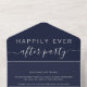 Elégant pavillon bleu marine et crème pâle ou faire-part mariage privé et invitation de mariage. "Happily Ever After Party" est écrit dans un mélange de typographie simple et d'un script élégant avec des swashes. Entrez l'adresse URL de votre site Web mariage pour créer un code QR pour vos invités à RSVP en ligne et obtenir des informations sur l'hébergement, les itinéraires, toute nuit avant les parties et d'autres détails. Une carte postale RSVP détachée fournit une réponse pratique sans enveloppe de vos invités qui préfèrent RSVP par la poste.