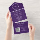 Invitation Tout En Un Élégant script violet unique moderne RSVP QR Code