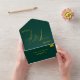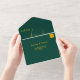 Cet élégant faire-part de mariage vert et or est parfait pour un mariage moderne. le design simple comprend une élégante calligraphie dorée sur un arrière - plan vert.