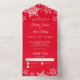 Invitation Tout En Un Élégant Snowflakes Noël Mariage rouge brillant