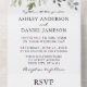 Elégante aquarelle moderne Botanical Greenery Mariage All In One Invitation avec la carte RSVP comprend des feuilles d'eucalyptus, le feuillage botanique vert, feuilles bleus poussiéreux et d'autres belles verdure botanique.