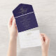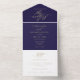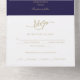 Invitation Tout En Un Élégante Gold Calligraphy Marine Mariage bleu