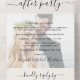 Elégante réception de mariage tout en une invitation avec votre photo de jour de mariage superposée avec votre faire-part et invitation customisée et "Happily Ever After Party" écrit en simple typographie et un script élégant avec des swashes. Entrez l'adresse URL de votre site Web mariage pour créer un code QR pour vos invités à RSVP en ligne et obtenir des détails supplémentaires. Une carte postale RSVP détachée fournit une réponse pratique et écologique et sans enveloppe de vos invités qui préfèrent RSVP par la poste.