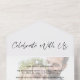 Élégant elopement ou mariage privé faire-part et réception tout en une invitation à annoncer votre mariage à la famille et amis et à les invitation à une réception ou une fête post-mariage. Votre faire-part customisée et votre invitation chevauche votre photo de jour de mariage et "Célébrez avec nous" est écrit dans un script élégant. Entrez l'adresse de votre site Web mariage pour créer facilement un code QR que vos invités peuvent scanner en ligne vers RSVP.