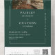 Cette invitation tout-en-un présente un élégant style moderne minimaliste avec des polices de typographie en forme d'arc de cercle propres et simples, ainsi que des initiales en monogramme avec un arrière - plan vert émeraude. La simplicité de ce design ajoute une touche d'élégance à votre mariage. Il fonctionne bien avec de nombreux thèmes mariages et certainement un grand ajout à votre mariage. Il suffit de customiser les noms et le libellé en quelques étapes simples et de personnaliser la carte d'invitation tout-en-un avec votre photo du couple heureux et de remplacer le code QR par le vôtre pour donner à votre invitation une touche personnelle agréable. Cette invitation vous fera économiser de l'argent pour envoyer tout en même temps. Il a une carte postale perforée RSVP peut être facile à déchirer et votre invité vous l'envoie. Il suffit de plier chaque carte dans la forme esquissée — sceller et envoyer à vos invités. Aucune enveloppe n'est nécessaire pour l'expédition — juste l'affranchissement. Remarque : la phrase "gentiment joignez-vous à nous pour célébrer le mariage de", "réception à suivre", et "gentiment répondre par" au verso avec les lignes et les éléments graphiques illustration ne peut être modifiée, supprimée, déplacée ou modifiée. Elles sont réparées. Si vous devez changer la couleur, vous pouvez customiser l'invitation à la carte. Vous pouvez customiser et personnaliser l'invitation afin de répondre à vos besoins mariages et cliquez simplement sur personnaliser de l'invitation.