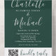Invitation Tout En Un Emerald Green Script moderne QR Code Mariage