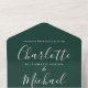 Le tout dans un faire-part de mariage avec un élégant nom de script signature et des initiales monogrammes sur un arrière - plan vert émeraude. L'invitation comprend une carte RSVP perforée avec votre code QR du site Web mariage et des détails. Conçu par Thisisnotme©