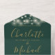 Le tout dans un faire-part de mariage avec de jolies lampes à cordes, élégant nom de script signature or et des initiales monogrammes sur un arrière - plan vert émeraude. L'invitation comprend une carte RSVP perforée qui peut être adressée individuellement ou laissée vide pour que vous puissiez écrire à la main les coordonnées de votre invité. Conçu par Thisisnotme©