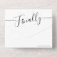 Enfin fête de mariage tardive avec un RSVP déchiré en noir et blanc intemporel. Script typographique sur un faire-part de mariage de design arrière - plan blanc : Enfin Célébrez avec nous. Un design contemporain simple et moderne, personnalisez avec votre propre salle de mariage ou de renouvellement tardif, les coordonnées des couples, votre photo préférée. Cette conception ne nécessite aucune enveloppe supplémentaire et dispose d'un RSVP perforé amovible pour des réponses faciles. Produits mariages correspondants et autres options de couleur disponibles dans le magasin. Conception par www.mylittleedenweddings.com