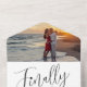 Enfin fête de mariage tardive avec une option RSVP ou QR code en noir et blanc intemporel simple. Script typographique sur un faire-part de mariage de design arrière - plan blanc : Enfin Célébrez avec nous. Design contemporain simple et moderne, personnalisez avec votre propre salle de mariage ou de renouvellement tardif, nom et réponse des couples, code QR du site web et votre photo préférée. Cette conception ne nécessite pas d'enveloppe supplémentaire et dispose d'un RSVP perforé détachable ou invité peut scanner votre propre utilisation pour générer du code QR pour une réponse super facile. Produits mariages correspondants et autres options de couleur disponibles dans le magasin. Conception par www.mylittleedenweddings.com