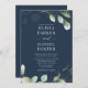 Invitation Tout en un Eucalyptus Navy Blue QR Code Mariage