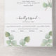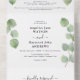 Affichez tous les détails de votre mariage avec cet élégant faire-part de mariage "All in One", avec un arrière - plan blanc classique, calligraphie noire et police cursive, conçu avec succulent aquarelle vert eucalyptus feuilles et faux tiges parties scintillant or. Les clients peuvent facilement déchirer la carte postale RSVP et l'envoyer par la poste ! Modifiez facilement toutes les informations avec les détails de votre mariage en utilisant le modèle fourni. Des invitations de mariage tout-en-un abordables qui raviront vos invités.