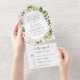 Invitation Tout En Un Eucalyptus Vert Mariage Rose or rose