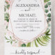 Invitation Tout En Un Eucalyptus Vert Mariage Rose or rose RSVP
