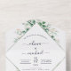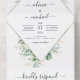 Eucalyptus Verdure Botanique et Vert et Or Aquarelle Géométrique Printemps de mariage Invitations sur arrière - plan blanc pour le printemps, été, hiver, automne, automne - comprend belle et élégante typographie script avec feuilles botaniques modernes et verdure pour la célébration spéciale de mariage.